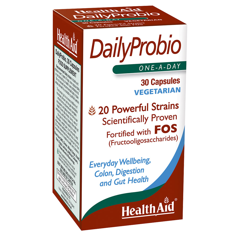DailyProbio is a unique and suggested for daily use formulation containing a superior blend of 10 billion live cultures, using 20 different most researched acid and bile resistant strains to ensure that the bacteria are not destroyed by the stomach juices before they reach the intestines. DailyProbio is also fortified with the prebiotic Fructo-oligosaccharides (FOS), to help stimulate the proliferation and survival of 'friendly' bacteria.