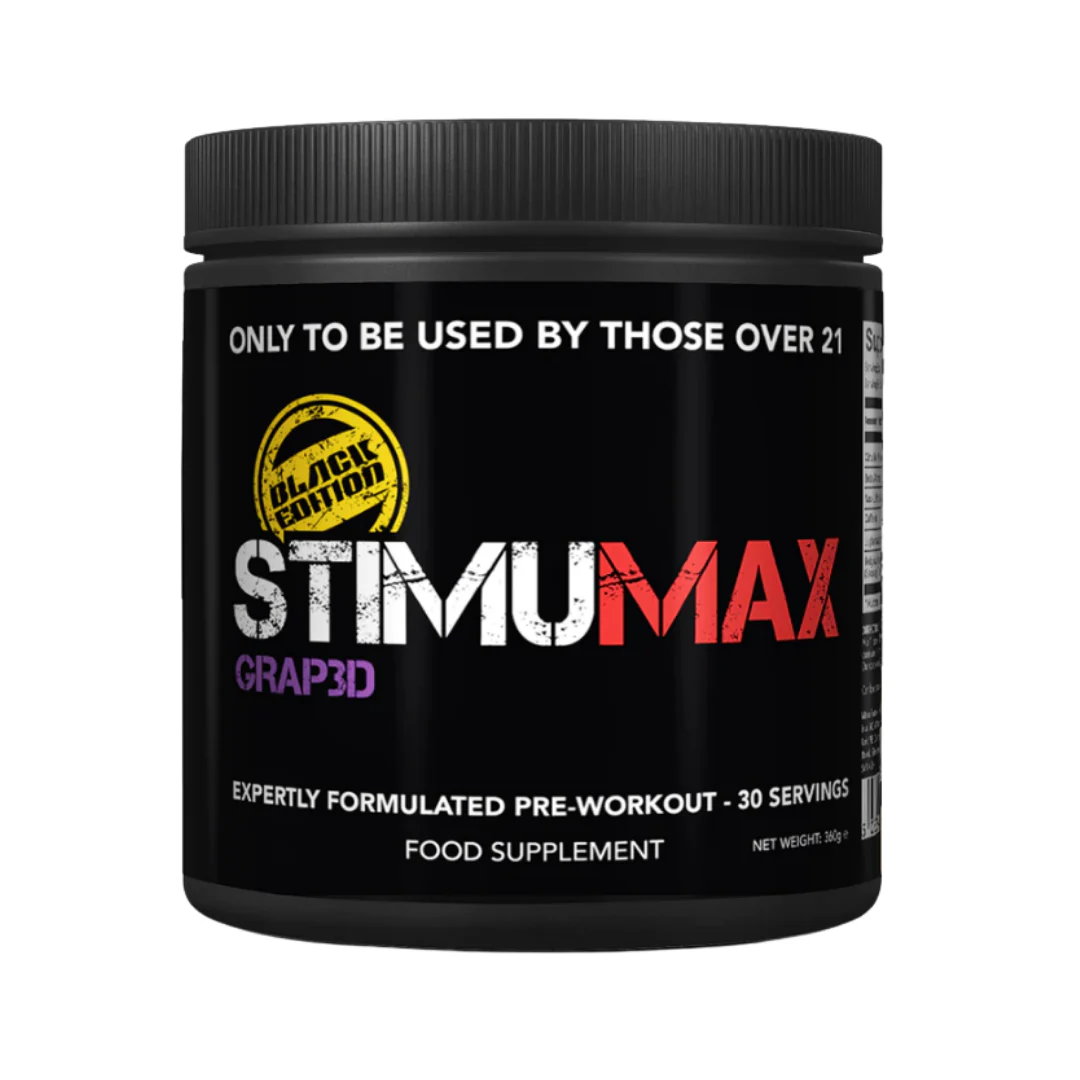 StimuMAX Black Edition, the unrivalled pre workout designed for your most intense and heavy sessions. This powerhouse formulation is not for the faint-hearted. We still have the ingredients you will recognise from the StimuMAX OG; Citrulline Malate, Beta Alanine, NAC-L-Tyrosine, Juglans Regia and Caffeine. To that we added Kigelia Africana Extract to make it even more powerful.